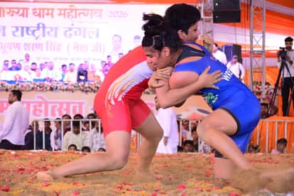 बाबा बाजार। मां कामाख्या धाम महोत्सव में मंगलवार को राष्ट्रीय दंगल प्रतियोगिता का आयोजन किया गया। प्रतियोगिता में पूर्व सांसद व भारतीय कुश्ती संघ के पूर्व अध्यक्ष बृजभूषण शरण सिंह हेलीकॉप्टर से कार्यक्रम स्थल पहुंचे, जहां विधायक रामचंद्र यादव और न्यास के अध्यक्ष रविकांत तिवारी मोनू ने उनका स्वागत किया। करीब 100 से अधिक पहलवानों ने अपने दांव-पेंच का प्रदर्शन किया।