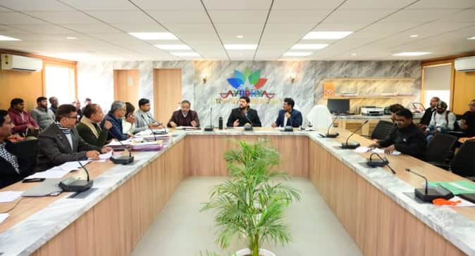 17- अयोध्या विकास प्राधिकरण के सभागार में विभिन्न परियोजनाओं के प्रगति की समीक्षा बैठक करते उपा