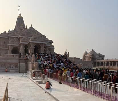 भक्तों की भारी भीड़ को देखते हुए मंदिर प्रशासन ने श्रद्धालुओं की सुविधा के लिए मंदिर के कपाट तय समय से एक घंटे पहले खोल दिए। सुबह छह बजे से शुरू हुआ दर्शन का सिलसिला दिन भर निर्बाध चलता रहा। दोपहर में रामलला को विश्राम नहीं कराया गया केवल पांच मिनट के लिए पर्दा लगाकर भोग अर्पित किया गया। माघ मेले के बाद प्रयागराज से लौट रहे श्रद्धालुओं के पलट प्रवाह ने अयोध्या की रौनक और बढ़ा दी। शहर के प्रमुख मार्गों, प्रवेश द्वारों और मंदिर मार्गों पर दिनभर भारी दबाव बना रहा। तड़के से ही राम मंदिर परिसर और आसपास के क्षेत्रों में श्रद्धालुओं की कतारें लग गईं। ‘जय श्रीराम’ के उद्घोष से पूरा नगर गूंजता रहा। राम मंदिर के वीआईपी दर्शन मार्ग पर भीड़ का दबाव दिखा।