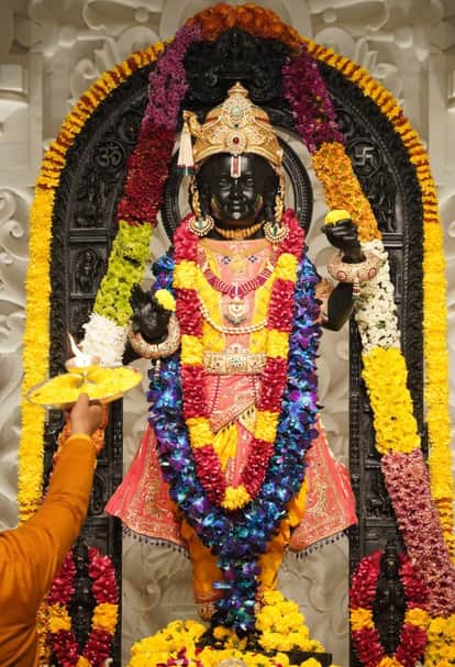 14- रामलला के गाल पर लगाया गया अबीर-गुलाल व आरती करते पुजारी- ट्रस्ट