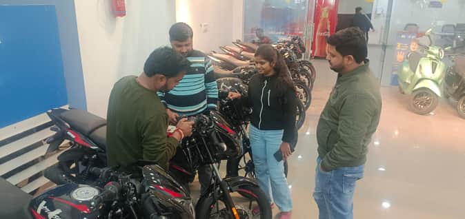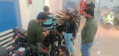 16-नाका के दिशा कोचिंग के बगल बजाज की एजेंसी से बाइक की खरीदारी करने पहुंचे ग्राहक।-संवाद