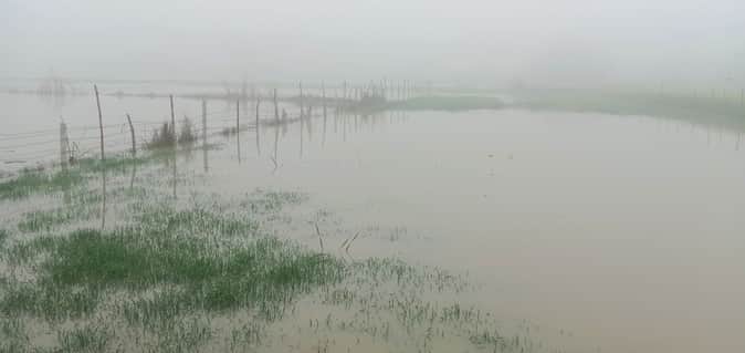 नहर के पानी से डूबी गेहूं व सरसों की फसल