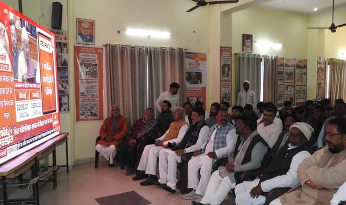 भाजपा कार्यालय में बजट देखते कार्यकर्ता। संवाद