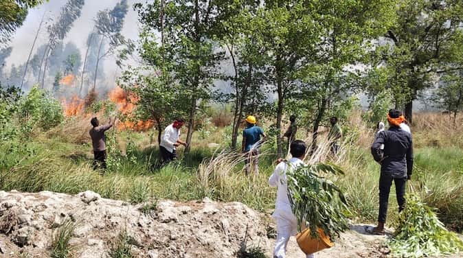 बरदह के अहिरौली गांव की बाग में ऊंची-ऊंची उठती आग की लपटें। संवाद