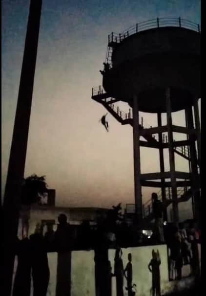 सरायमीर थाना क्षेत्र के शेरवां गांव के पास पानी की टंकी पर चढ़ा युवक अचानक संतुलन बिगड़ने से नी