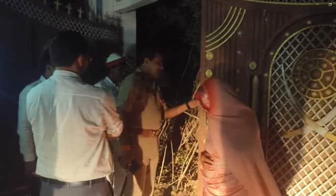 पूर्व मंत्री के सीज आवास को खोलने पहुंची पुलिस और प्रशासन की टीम। श्रोत-वीडियो ग्रैब