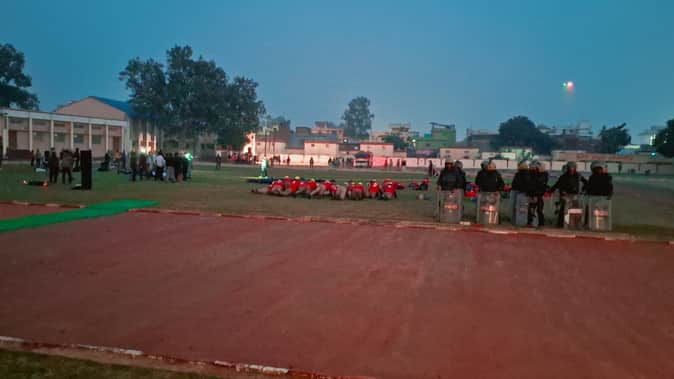 ब्लैक आउट के बाद अभ्यास करते पुलिस कर्मी। संवाद
