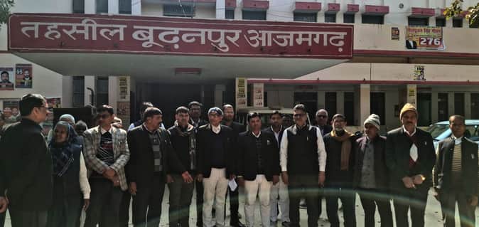 Azamgarh News: महिला साथी पर प्राथमिकी के विरोध में वकीलोंं का पुलिस के खिलाफ प्रदर्शन