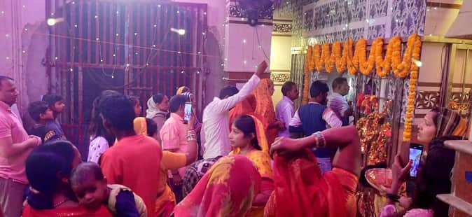 चौक स्थित दक्षिणमुखी माता मंदिर में नवमी पर भक्तों की लगी भीड़। संवाद