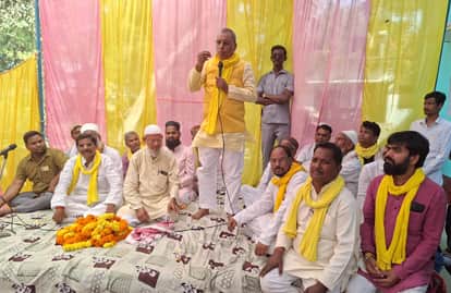 जन चौपाल को संबाेधित करते कैबिनेट मंत्री ओमप्रकाश राजभर। संवाद