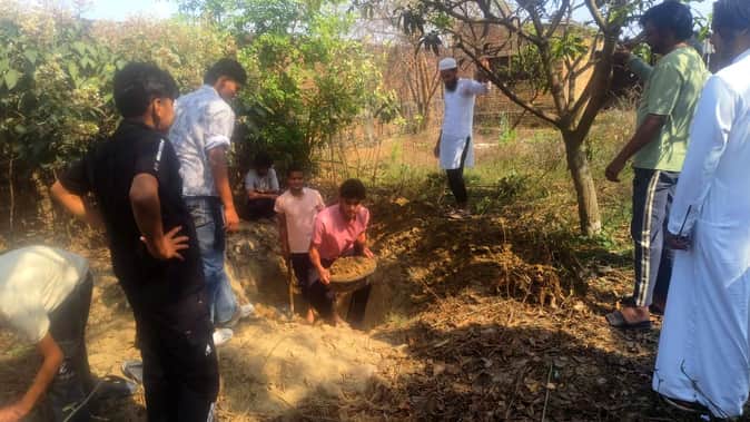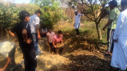 30 अंजानशहीद में कुत्तों के हमले से मारे बकरों को गड्ढा खोदकर दफनाने की तैयारी करते लोग। संवाद