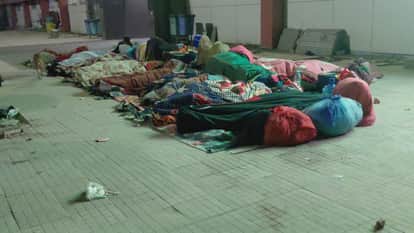 19 : रात करीब 11.30 बजे रेलवे स्टेशन पर खुले आसमान के नीचे सोते मिले लोग। संवाद