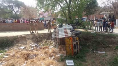 तस्वीरें: पिकअप में टॉयलेट शीट के नीचे थी अवैध शराब, पलटते ही ग्रामीणों ने लूटी, पंचायत चुनाव में होनी थी खपत