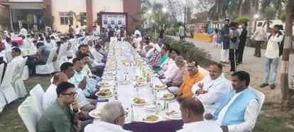 रोजा इफ्तार पार्टी में अंबिका चौधरी के साथ इफ्तार पार्टी करते लोग