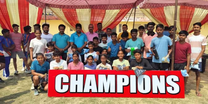 स्टेडियम में आयोजित हॉकी प्रतियोगिता में तरवां बना चैंपियन, ट्राफी के साथ खिलाड़ी। श्रोत- जिला