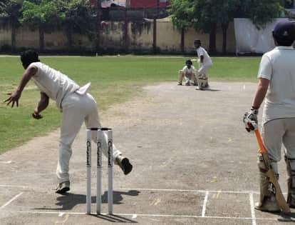 ओपन स्टेट आमंत्रण सीनियर पुरुष क्रिकेट प्रतियोगिता में खेलते खिलाड़ी। संवाद