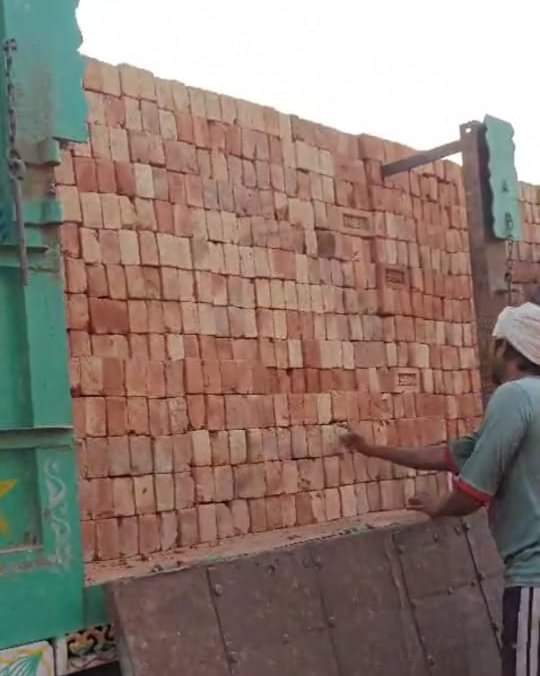 दिल्ली में 11,681 वाहनों के घुसने पर रोक की खबर से संबंधित फोटो । ट्रक में ईंट भरता मजदूर। फाइ