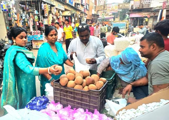बागपत के शौकत मार्किट में भैयादूज के पर्व पर भाई के लिए गोला खरीदतीं महिलाएं। संवाद