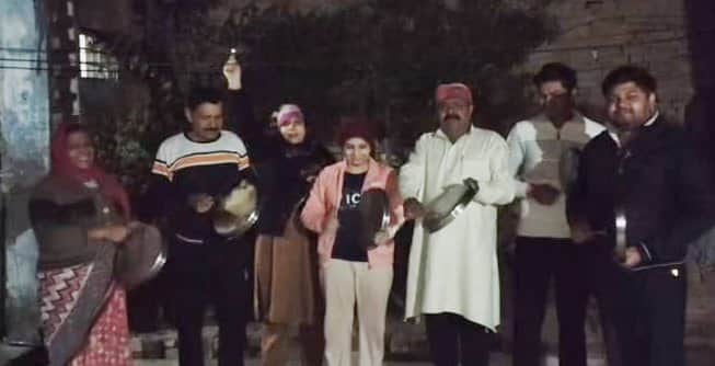 बड़ौत की चौधरान पट्टी में थाली बजाकर यूजीसी का विरोध करते आदित्य भारद्वाज और उनके परिजन। स्रोत
