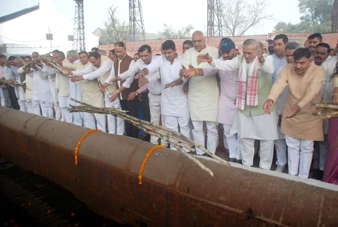 रमाला। सहकारी चीनी मिल रमाला में पेराई सत्र शुरू करने से पहले हवन किया गया। इसके बाद वन राज्य मंत्री केपी मलिक, छपरौली विधायक डॉ. अजय कुमार, उपसभापति जयदेव सिंह आर्य ने चेन में गन्ना डालकर शुभारंभ किया। मिल में पहले बैल-बुग्गी में गन्ना लेकर आए असारा गांव के किसान राहुल और इब्राहिम को शाॅल ओढ़ाकर सम्मानित किया।