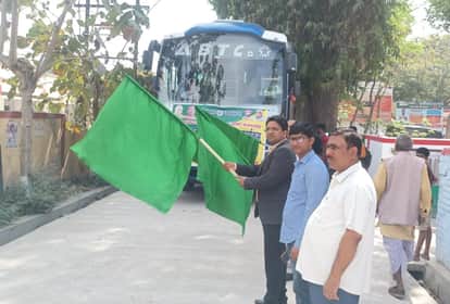 बस को रवाना करते कृषि अधिकारी। -संवाद