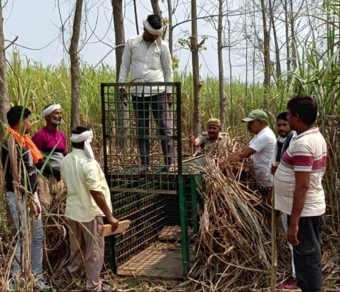 बाजपुरवा : तेंदुए को पकड़ने के लिए लगाए गए दो पिंजरे