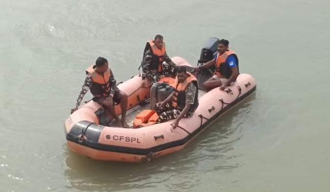 भरथापुर में नाव हादसे में लापता लोगों की तलाश करते जवान।