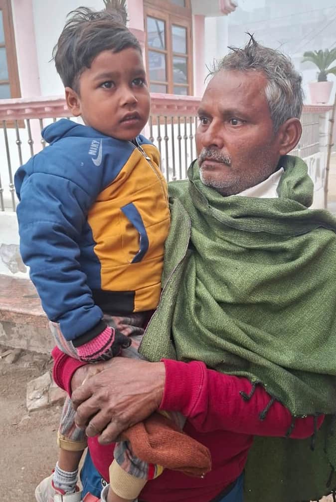 सीएचसी मे अपने बाबा की गोद में भेड़िए के हमले मे घायल यश कुमार।