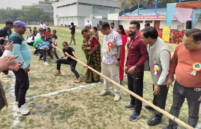 - फोटो : स्टेडियम में महिला दिवस पर खेल प्रतियोगिता में प्रतिभाग करतीं खिलाड़ी।