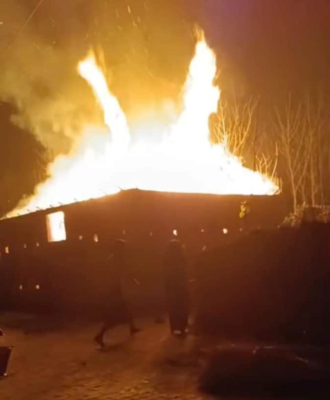 रामगांव थानाक्षेत्र में अग्निकांड के दौरान जलता मड़हा।
