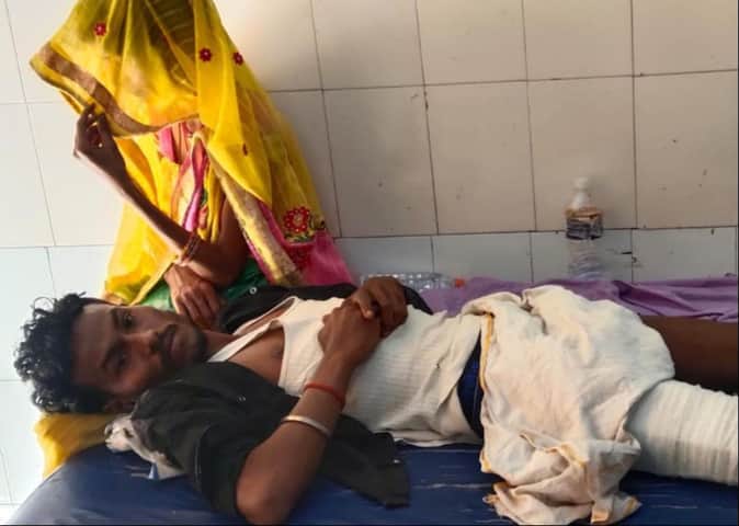 सड़क हादसे में घायल युवक का अस्पताल में चल रहा इलाज। -संवाद