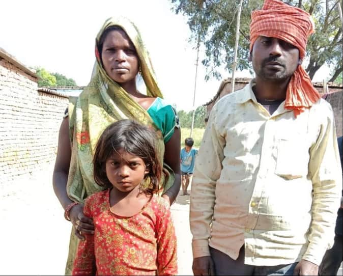 नानपारा के ग्राम ककरी में तेंदुए के हमले में घायल तारा अपने माता-पिता के साथ। -संवाद