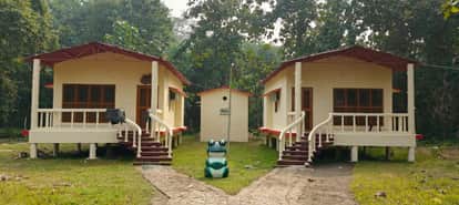 कतर्नियाघाट संरक्षित वनक्षेत्र में बना थारूहट। -संवाद