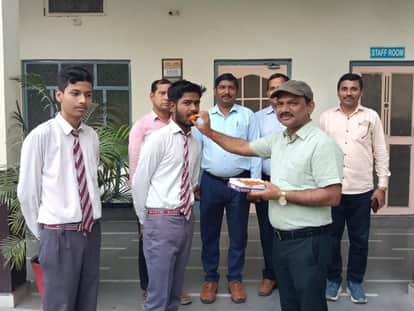 - फोटो : इंटरमीडिएट में 89.80 प्रतिशत अंक पाकर जिले में पांचवें स्थान पर रहे धनीराम को मिठाई खिलाते प्रबंधक।