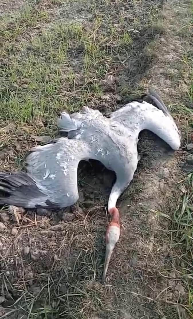 महसी क्षेत्र में मृत पड़ा मिला सारस। - स्रोत : ग्रामीण
