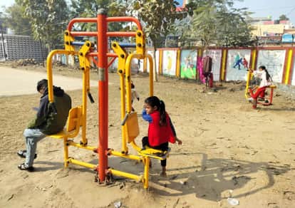बहराइच में रविवार को धूप निकलने पर पार्क में खेलते बच्चे। -संवाद
