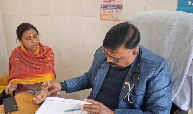 बाबागंज प्राथमिक स्वास्थ्य केंद्र पर जन आरोग्य मेले में मरीज देखते चिकित्सक। -संवाद