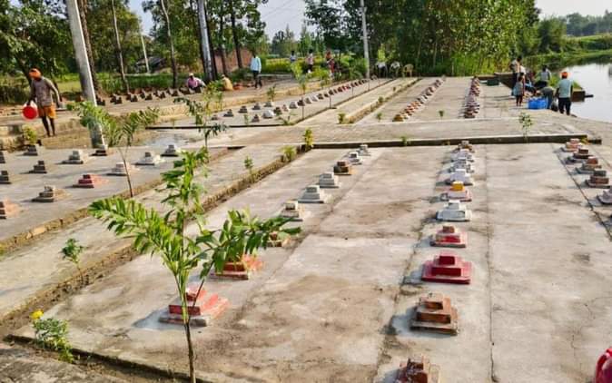 रुपईडीहा में छठ पूजा के लिए हनुमान सरोवर तट पर तैयार की की गई वेदी। -संवाद