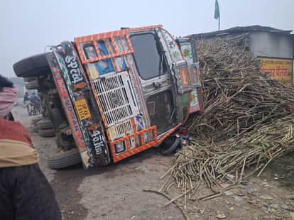 गन्ना लदा ट्रक पलटा