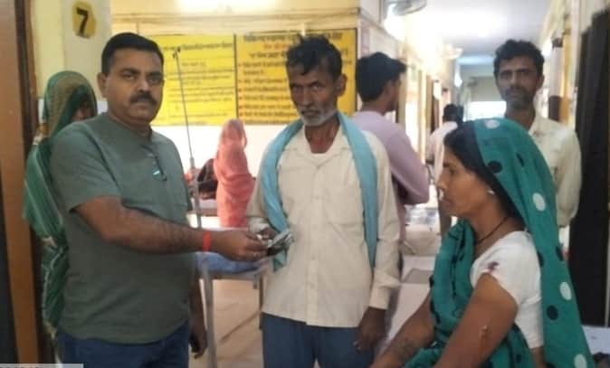 दलजीपुरवा गांव के पास तेंदुए के हमले में घायल उपमादेवी को राहत सहायता देते रेंजर। -संवाद