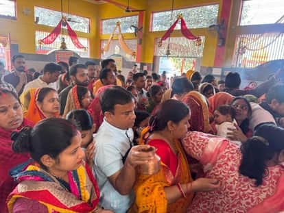 नानपारा के काली कुंड मंदिर में दर्शन करने के लिए जुटे श्रद्धालु। -संवाद