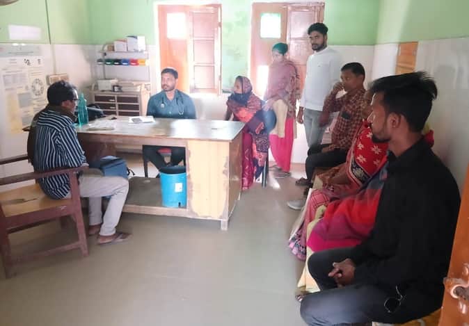 मुख्यमंत्री जनआरोग्य मेला के तहत प्राथमिक स्वास्थ्य केंद्र नगरा में मरीजों का उपचार करते चिकित्