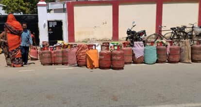 गैस एजेंसी पर सिलिंडर के लिए लगी कतार।संवाद