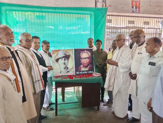 बलिया। शहीद-ए-आजम भगत सिंह एवं उनके साथियों का शहादत दिवस एवं महान समाजवादी नेता एवं स्वतंत्रता सेनानी डा़ॅ राम मनोहर लोहिया की जयंती मनाई गई। जेपी विचार मंच व भाकपा (माले) के तत्वावधान में सोमवार को कलक्ट्रेट स्थित अधिवक्ता हाॅल में मनाई गई। इसमें समाजिक-राजनैतिक कार्यकर्ताओं सहित अधिवक्ताओं ने भी शहीद-ए-आजम भगत सिंह एवं डा़ॅ राम मनोहर लोहिया को श्रद्धांजलि दी।