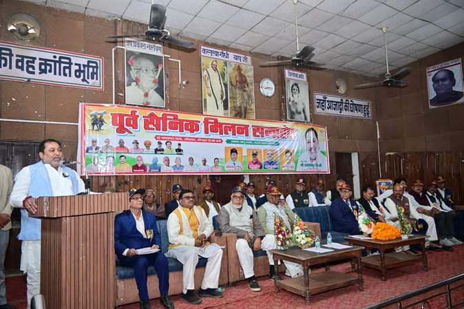 बलिया। आज देश हमारे वीर सैनिकों की वजह से ही पूर्ण रूप से सुरक्षित है। ऐसे में उनके सम्मान में नगर क्षेत्र में प्रतिवर्ष 16 दिसंबर को पूर्व सैनिक मिलन समारोह को शौर्य दिवस के रूप में मनाया जाएगा। ये बातें रविवार को टाउन हाल में आयोजित पूर्व सैनिक मिलन समारोह में प्रदेश सरकार के परिवहन मंत्री दयाशंकर सिंह ने कहीं।