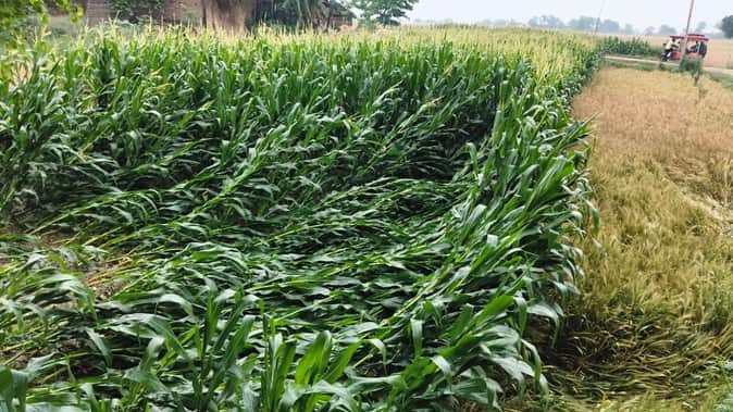 बेमौसम बारिश के चलते गिरी खड़ी मक्का की फसल।संवाद