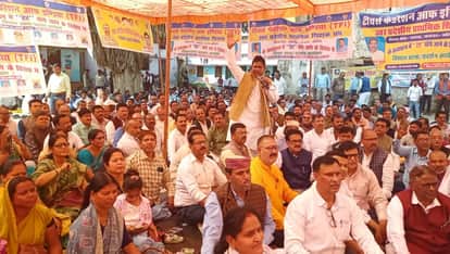 टेट अनिवार्यता समाप्त करने की मांग को लेकर बीएसए कार्यालय परिसर में आयोजित शिक्षकों के धरने को
