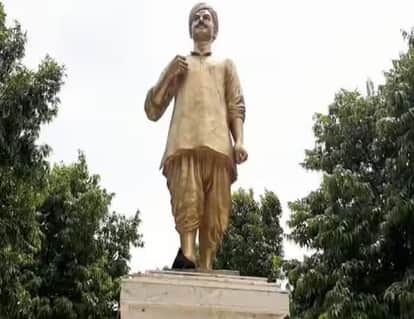 नगवा गांव स्थित शहीद मंगल पांडेय की प्रतिमा।संवाद