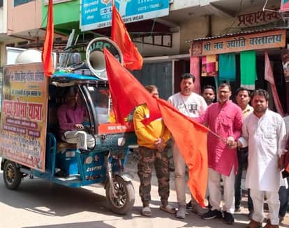 रामनवमी पर निकालने वाले शोभायात्रा के लिए जागरुकता वाहन को हरी झंडी दिखाकर रवाना करते विहिप के