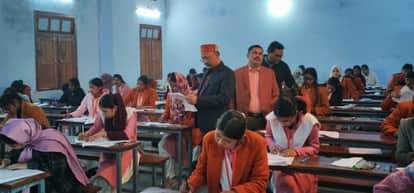बलरामपुर के एमएलके पीजी कॉलेज में परीक्षा देते परीक्षार्थी ।